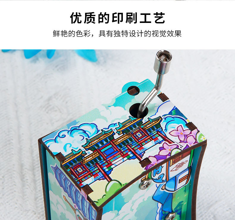 原创木质音乐盒城市景点文创八音盒旅游纪念品国潮摆件冰箱贴摆摊