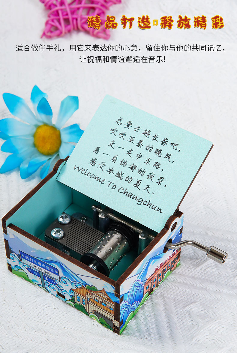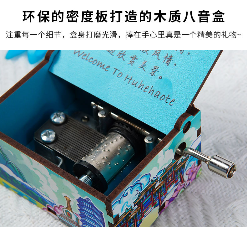 オリジナル木製全国ランドマークミュージックボックス手回しオルゴールミュージックベル旅行お土産都市文化創造