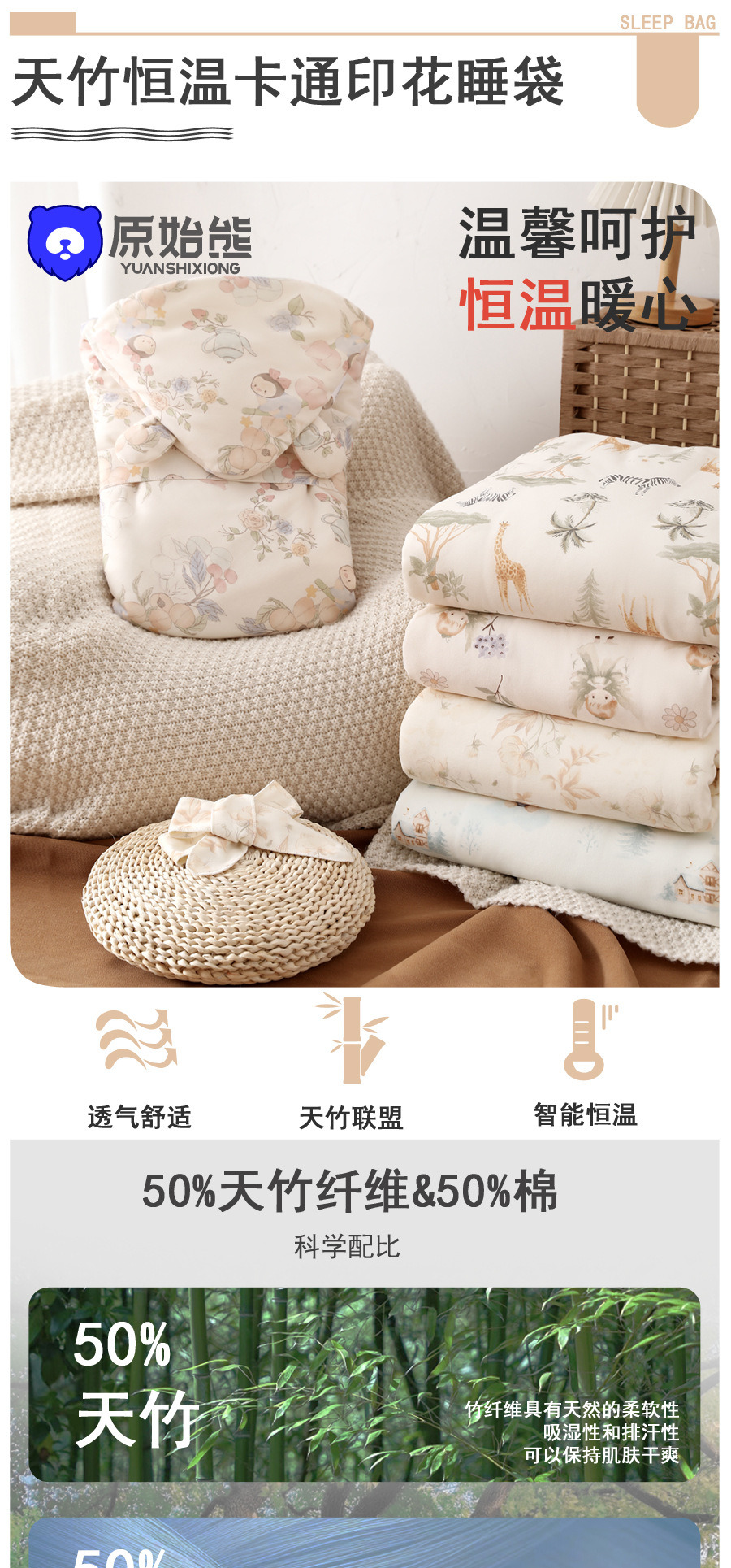 ベビー寝袋春夏竹繊維分脚パジャマ蹴り防止四季通用子供赤ちゃん二重布寝袋