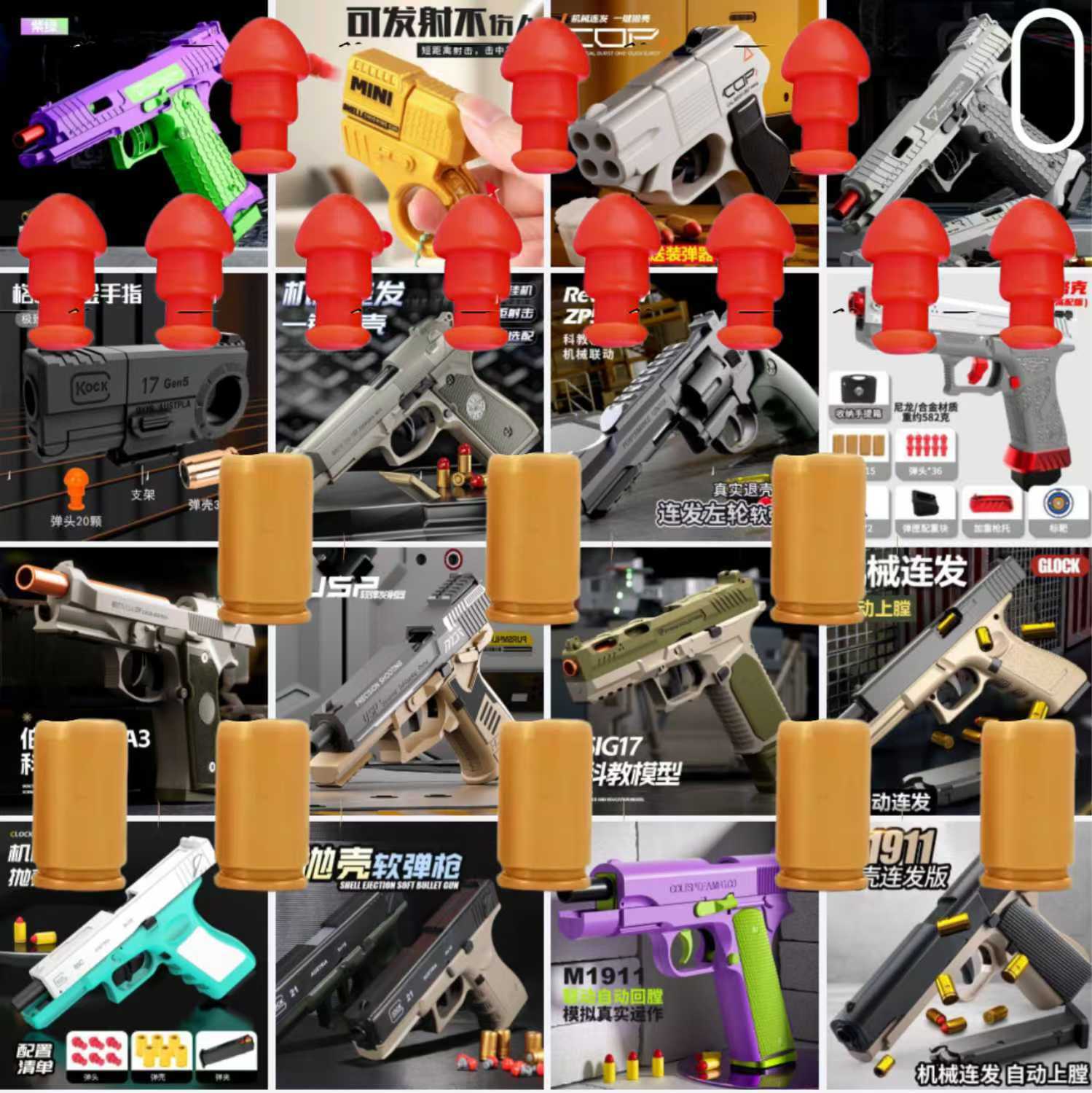 1911自动回膛抛壳连发弹壳玩具柯尔特空挂软弹枪弹头格洛克儿童配
