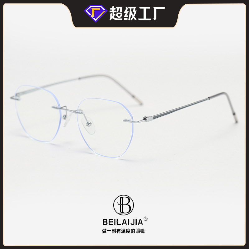 中古メタルメガネ枠なしメガネ高级感女性シンプル个性ありつけられる度数素顔フレームなしメガネ枠