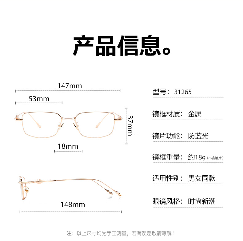 gm眼镜框金丝方形光学眼镜方圆脸显瘦素颜近视眼镜框丹阳眼镜