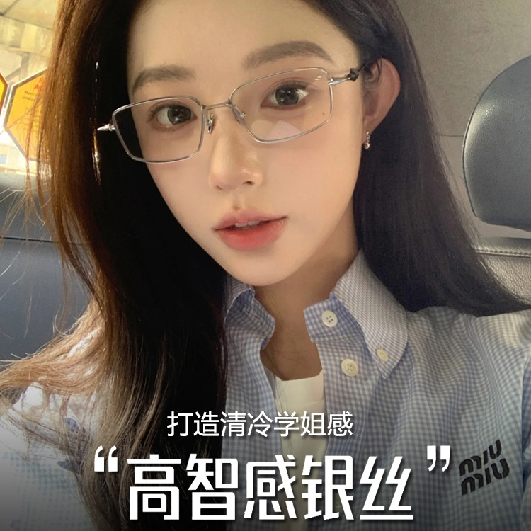 纯欲清冷无边框近视眼镜女款防蓝光可配度数高级感御姐框架眼镜