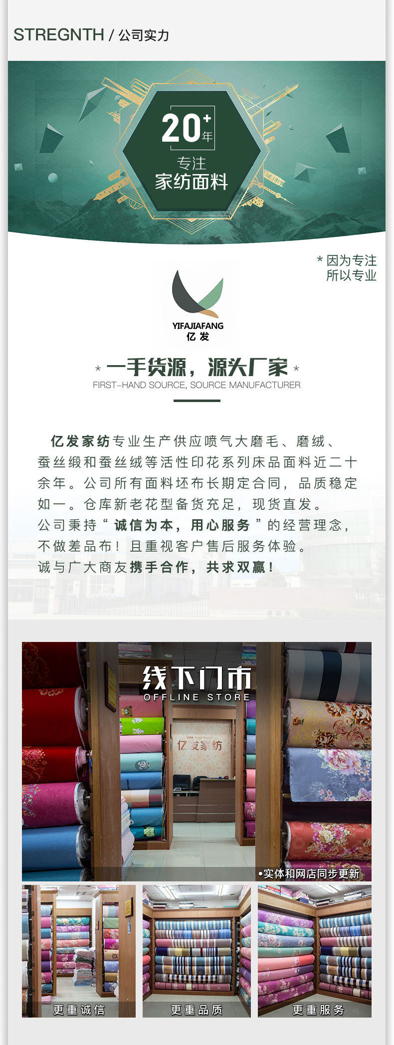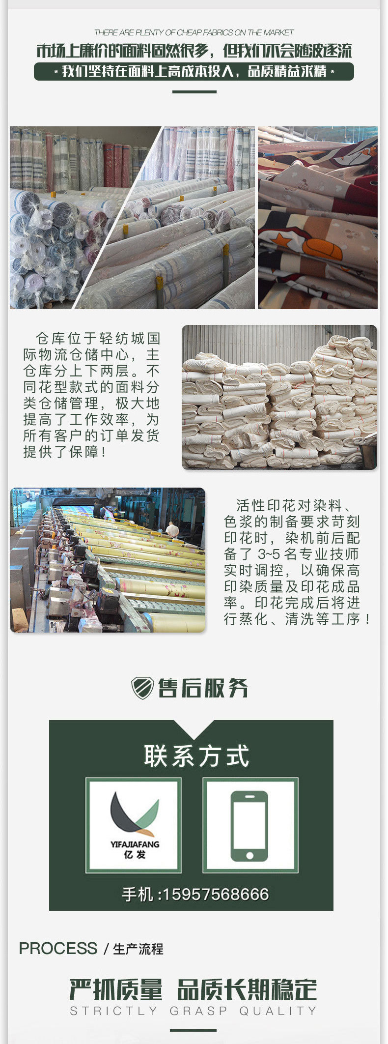 Jinyifaの秋冬の新作厚みのある起毛純綿生地は柔らかく肌に優しく、反応性のある印刷プロセスを使用した高品質のベッドシーツ生地です。