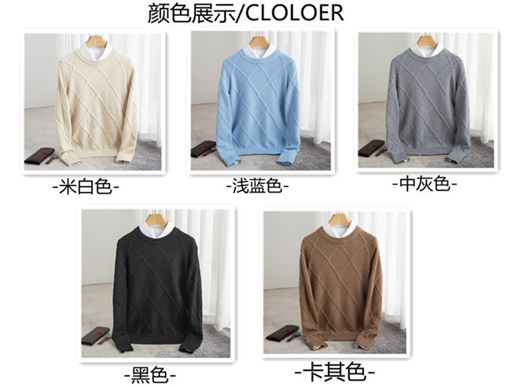 2025秋冬新款男士纯色圆领提花毛衣男休闲时尚简约针织衫打底上衣