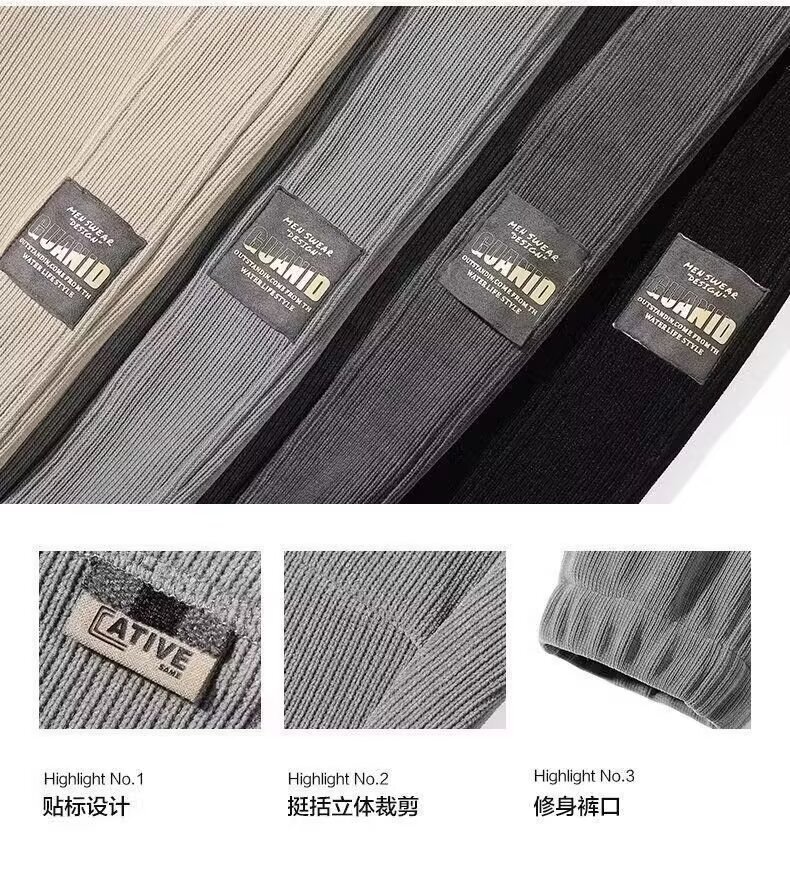 クロスボーダーホットセール春と秋の無地ニットポロシャツメンズ韓国風ストライプラペルプルオーバー長袖Tシャツセーターメンズ