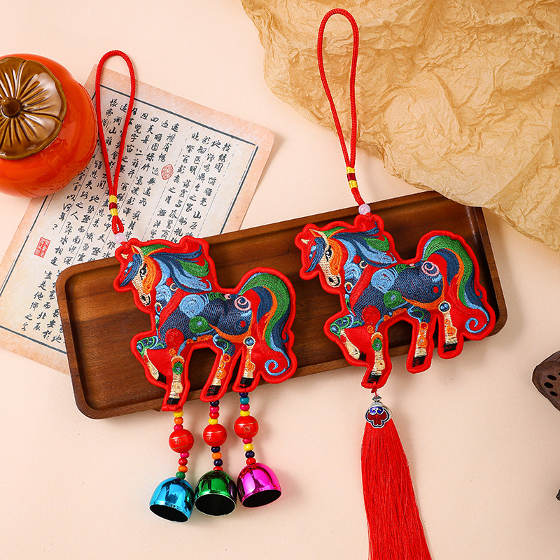 马年香包挂件双面刺绣新年流苏香囊春节装饰品生肖马吉祥物车挂饰