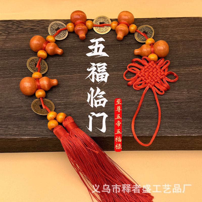 五帝のお金のペンダントの真銅の純銅の桃の木のヒョウタンの中国は銅のお金のペンダントの自動車のペンダントの露店の旅行用品を結びます。