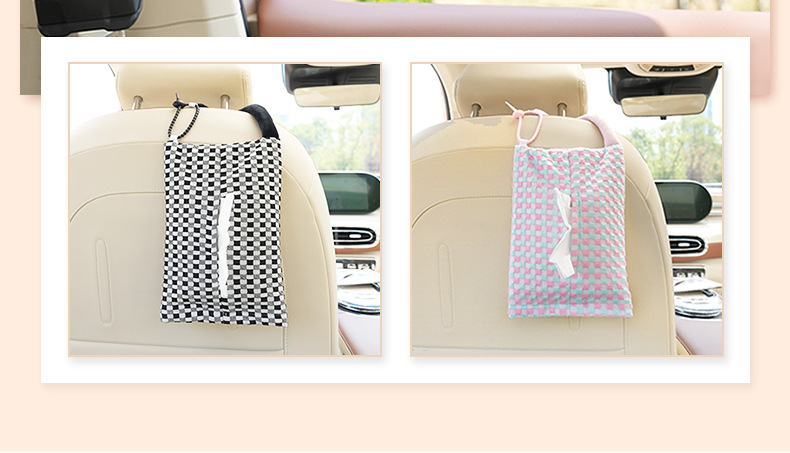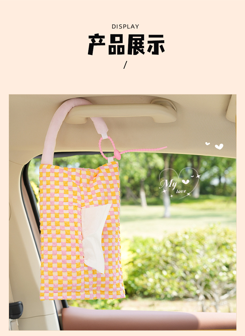 車のティッシュの箱のアイデアの愛の車のシートの吊り下げ式のティッシュの袋のかわいい多機能の車のティッシュは引き出します。