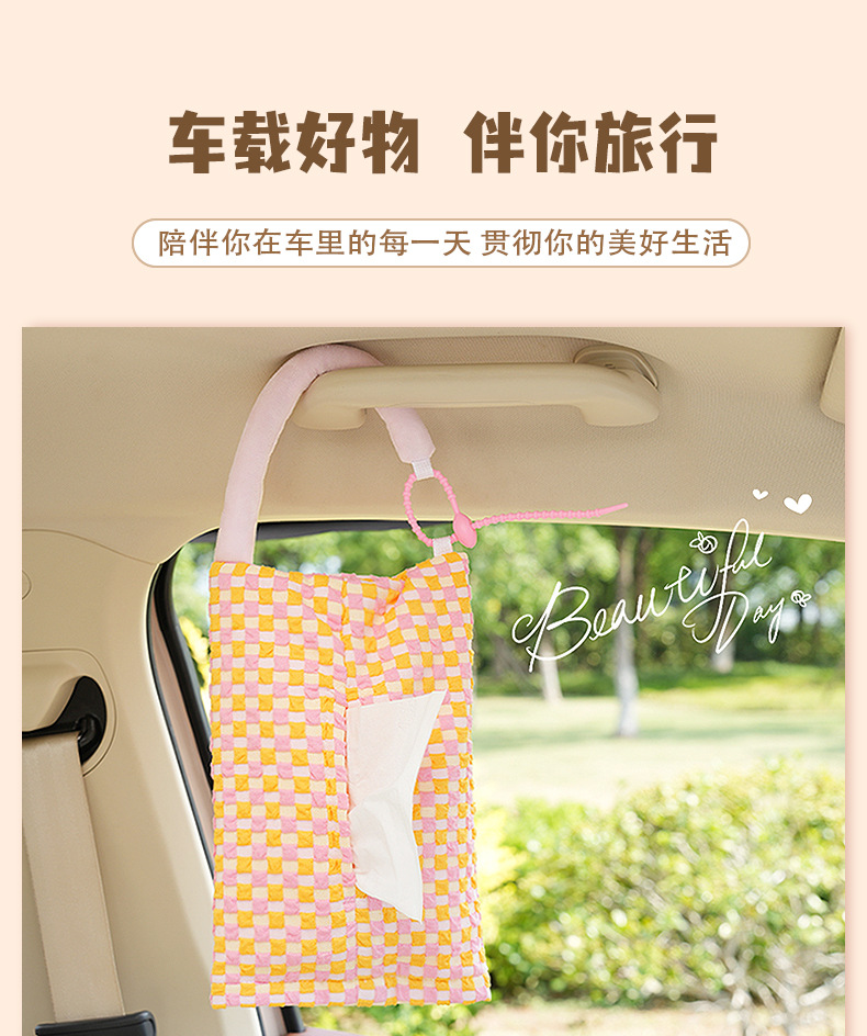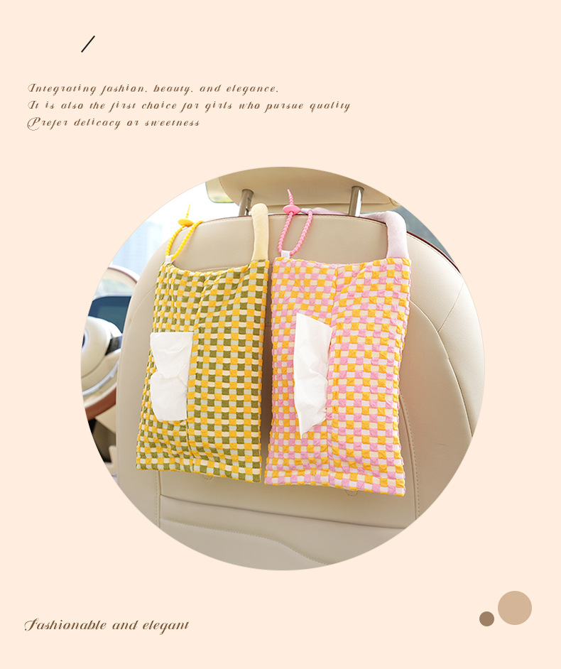 かわいいクリームスタイルの車のティッシュボックス DIY 生地車の吊り下げティッシュボックスクリエイティブカーホームデュアル目的ティッシュバッグ