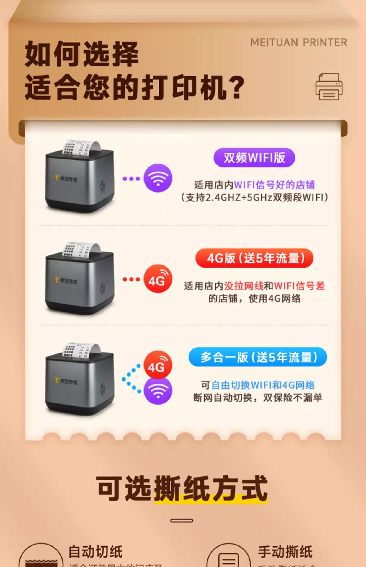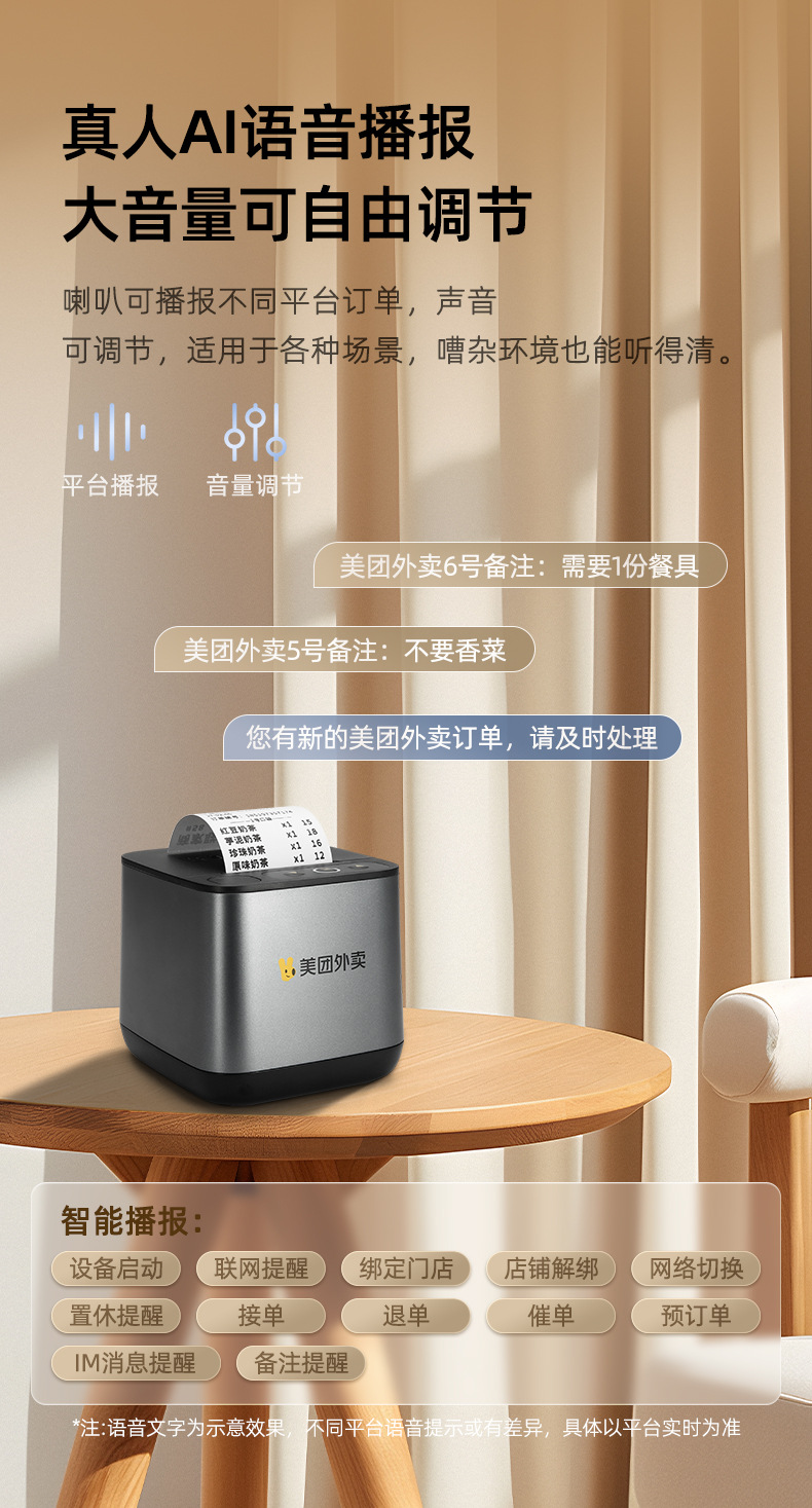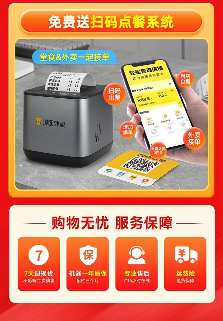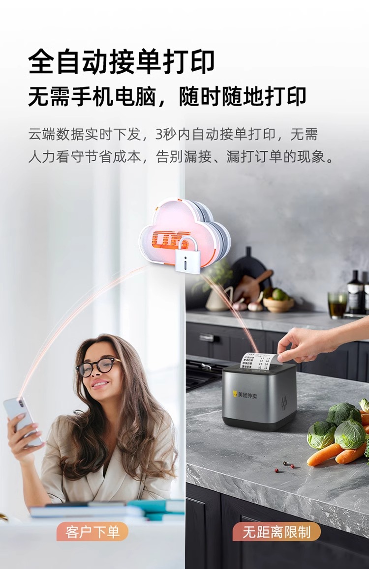 美団雲饥えたか、宅配注文プリンタ全自動受注感熱WiFi真人音声チケット機