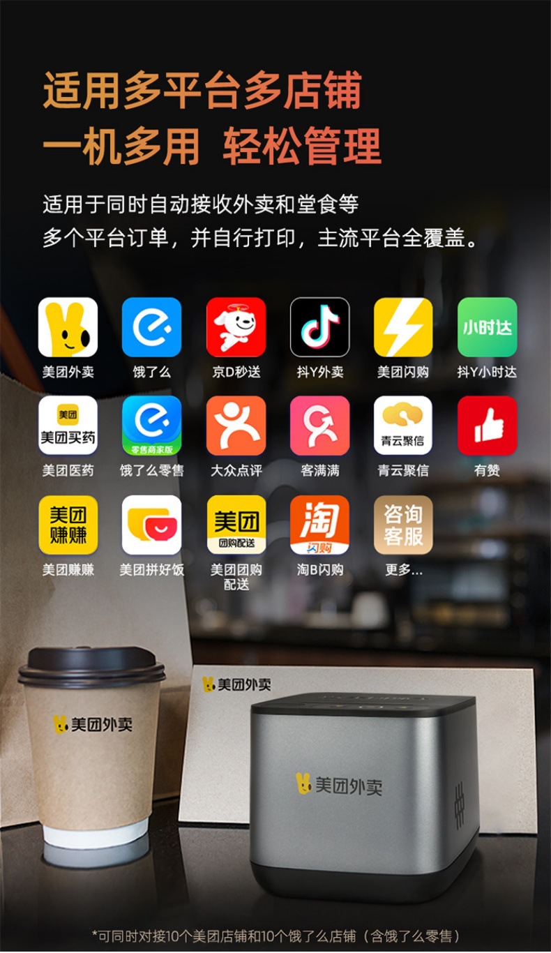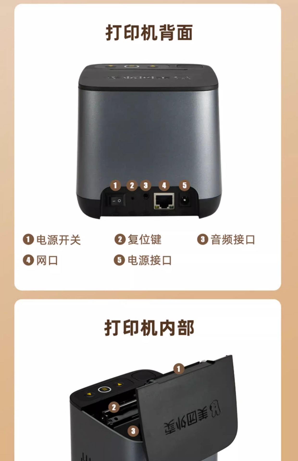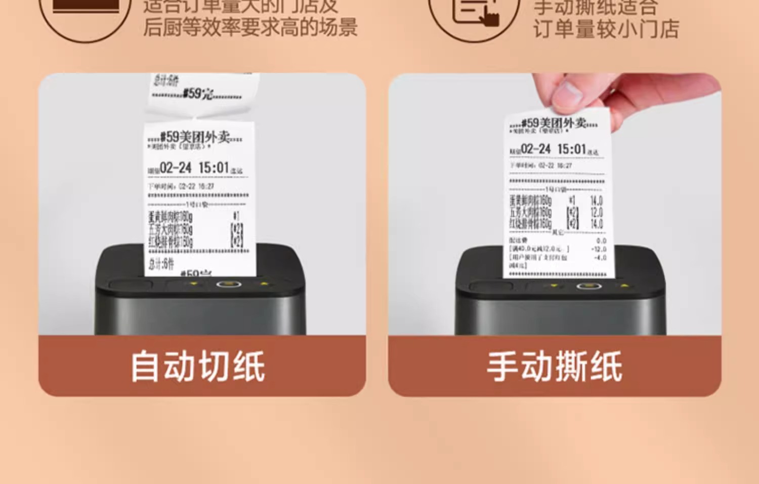 美団雲饥えたか、宅配注文プリンタ全自動受注感熱WiFi真人音声チケット機