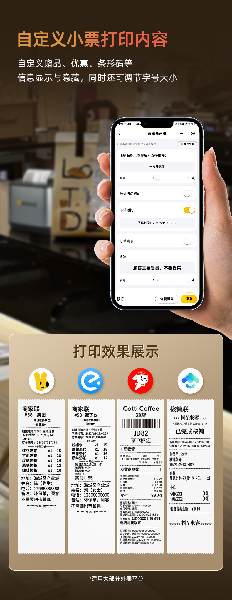 注文受付用リアル音声対応テイクアウトプリンター、京東、美団、餃子モール対応、Bluetoothサーマルプリンター、Bluetooth印刷