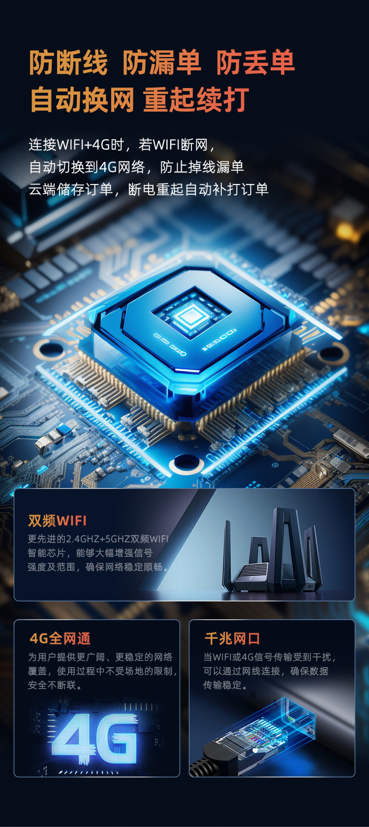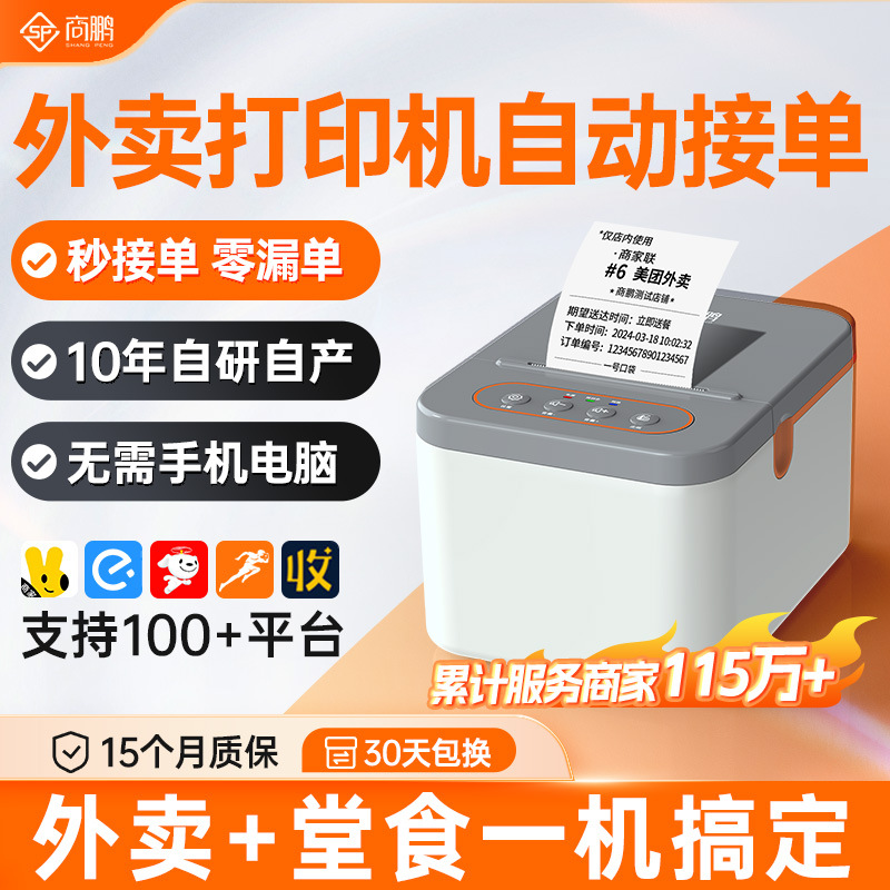 商鹏云美团京东饿了么外卖打印机自动接单打单WiFi热敏小票打印机