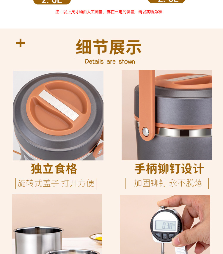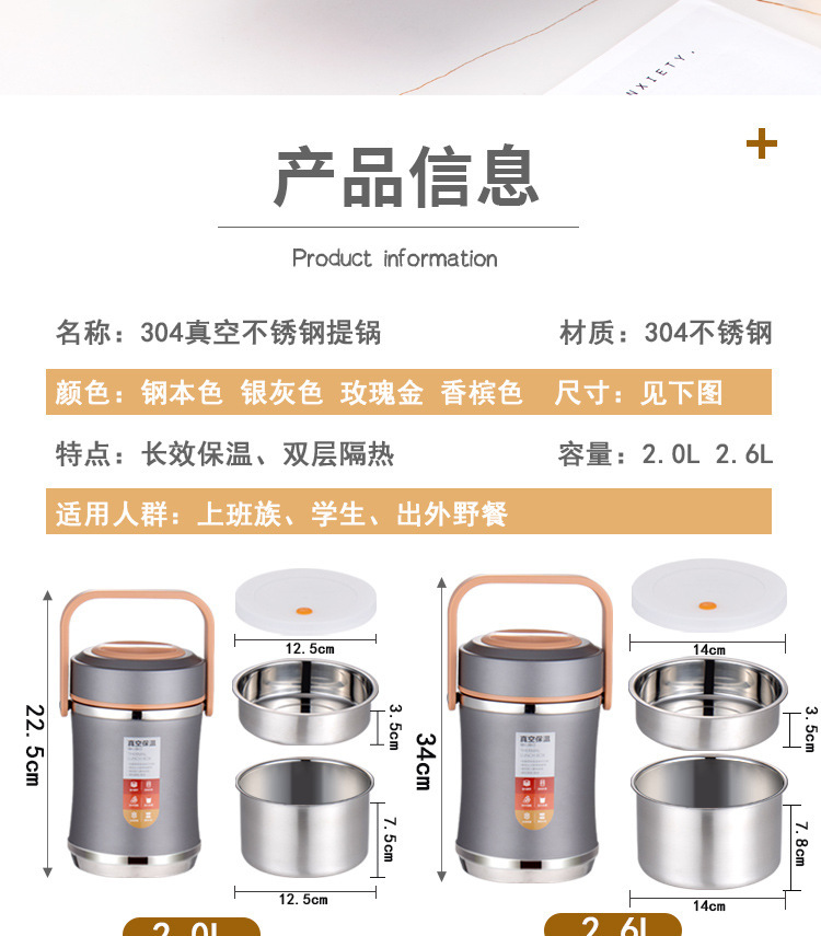 304ステンレス真空提鍋保温桶学生サラリーマン多層大容量弁当保温弁当箱