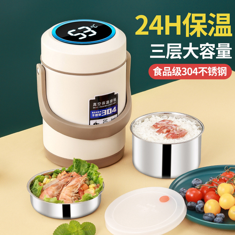 304ステンレス保温弁当箱大容量保温桶三層多層弁当箱成人学生真空提鍋