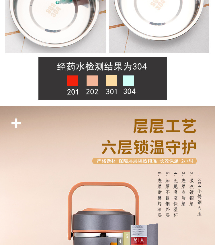 304ステンレス保温鍋真空弁当箱多層弁当箱学生サラリーマン携帯大容量弁当箱