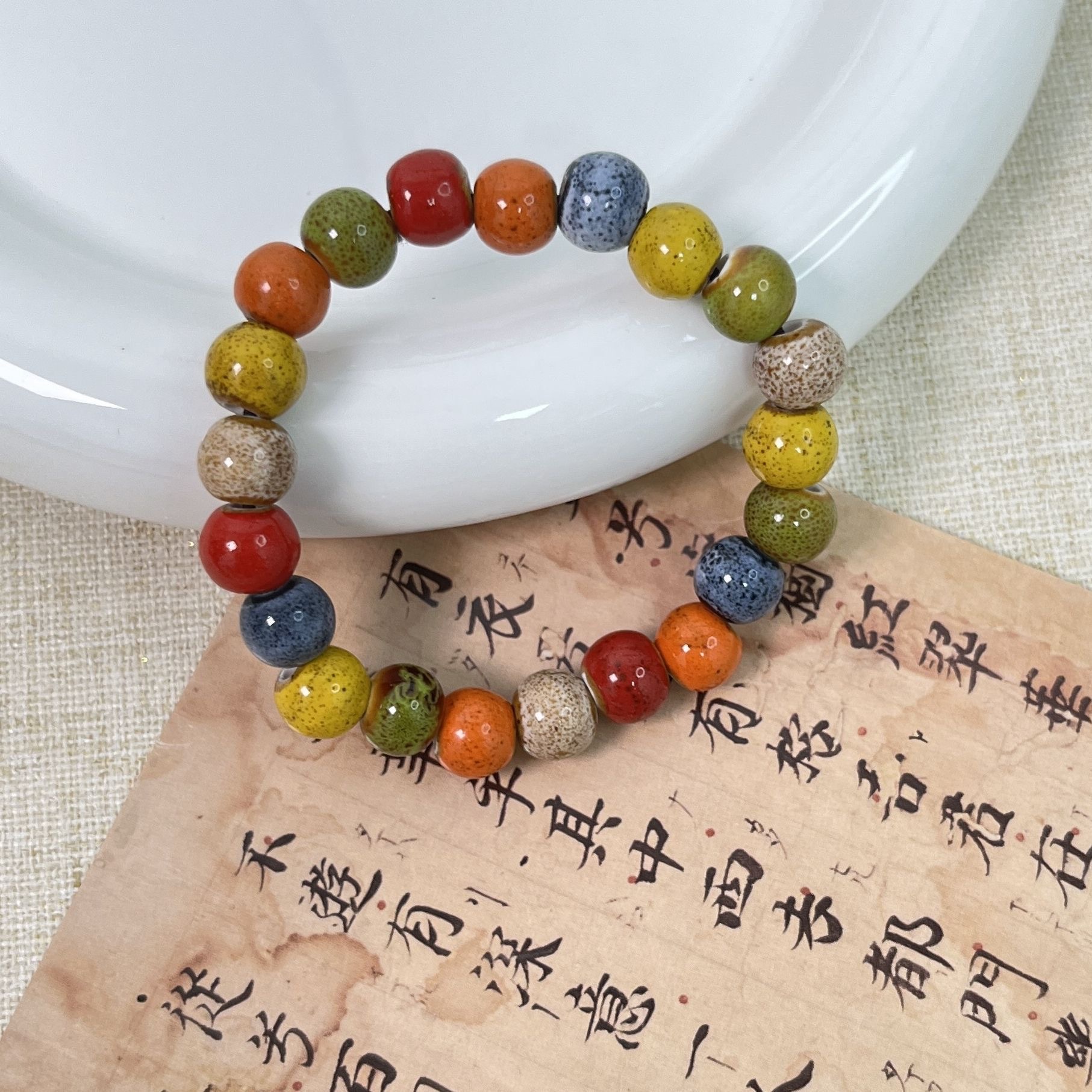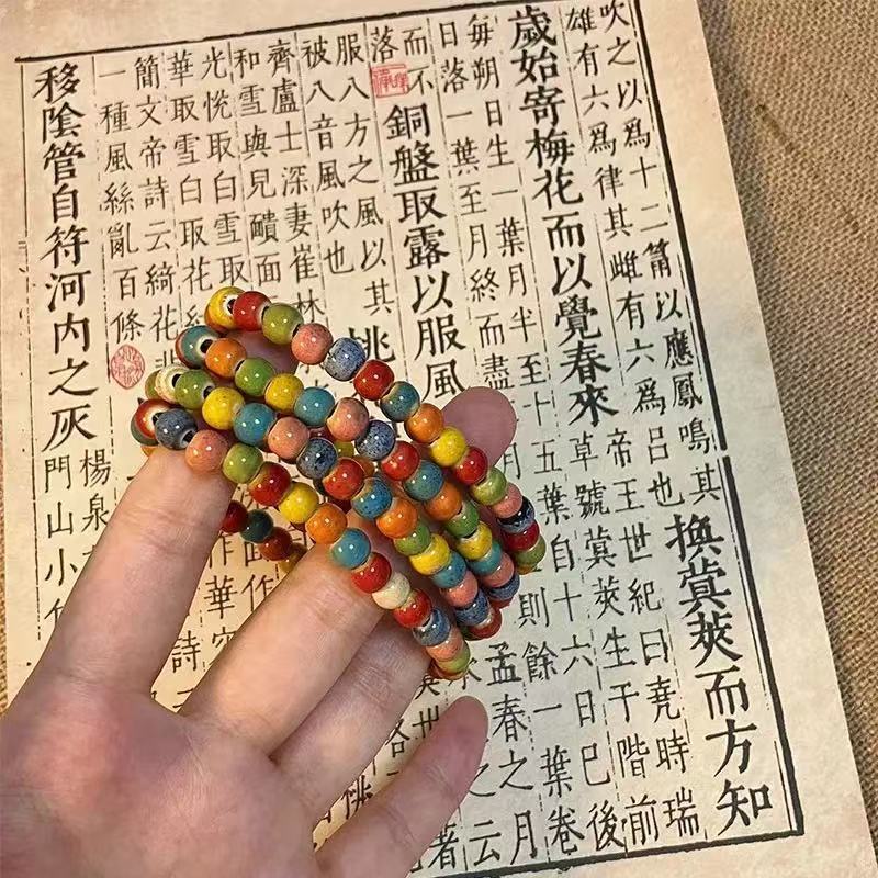 多巴胺彩色陶瓷串珠手链女小众设计波西米亚手串气质弹力叠戴手饰
