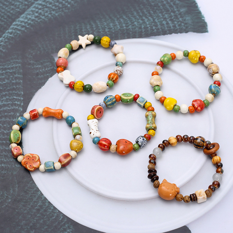 ドーパミンカラー陶磁器数珠手女小衆設計ボヘミアン手串気質弾力畳み手飾り