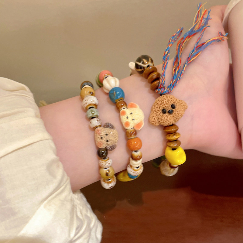 可爱加倍~卡通趣味陶瓷小熊手串女小众设计感学生党闺蜜叠戴手饰