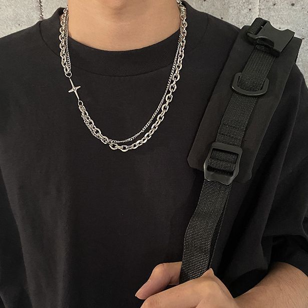 高街ヒップホップクロス二重チェーンネックレス男潮デザイン感小衆高級感鎖骨チェーンアクセサリー
