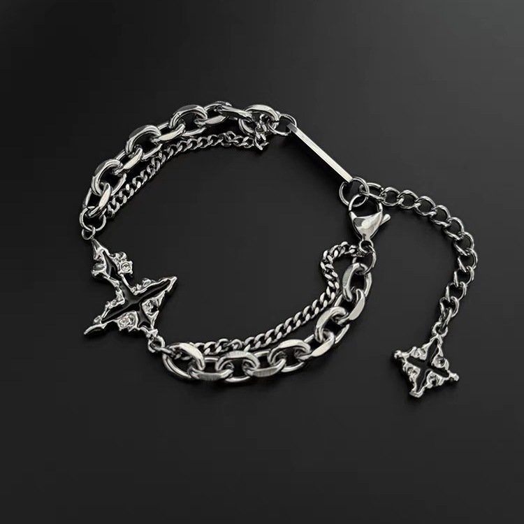 軽奢で高級感のあるダークチェーンクロスブレスレット メンズ 多用途 ニッチデザイン 高級アメリカンスタイル チタン鋼 男性用