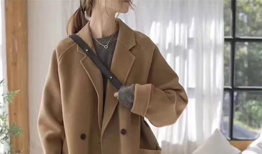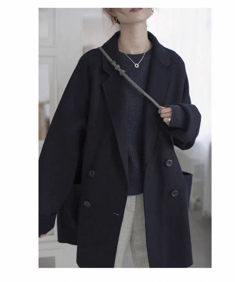 工場直販 Xiaoxiangfeng 両面ウールコートレディースショート 2025 新しい韓国スタイルの気質ラウンドネックウールコート