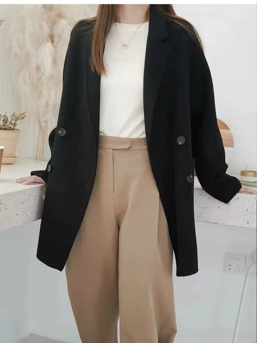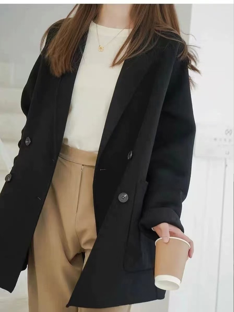 両面カシミヤコート ミドル丈 2025年 大きめラペル スーツカラー ダブルブレスト ウールジャケット ストレートシルエット エレガント 通勤スタイル