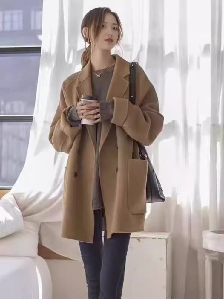 厂家直销气质双面羊毛大衣女2025冬季新款时尚韩版学院风毛呢外套