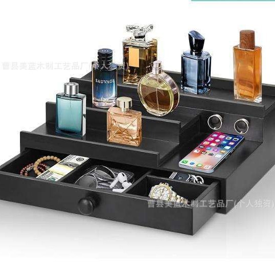 クロスボーダー木製化粧品収納ボックス引き出し付き隠し層香水展示棚階段式香水収納ボックス