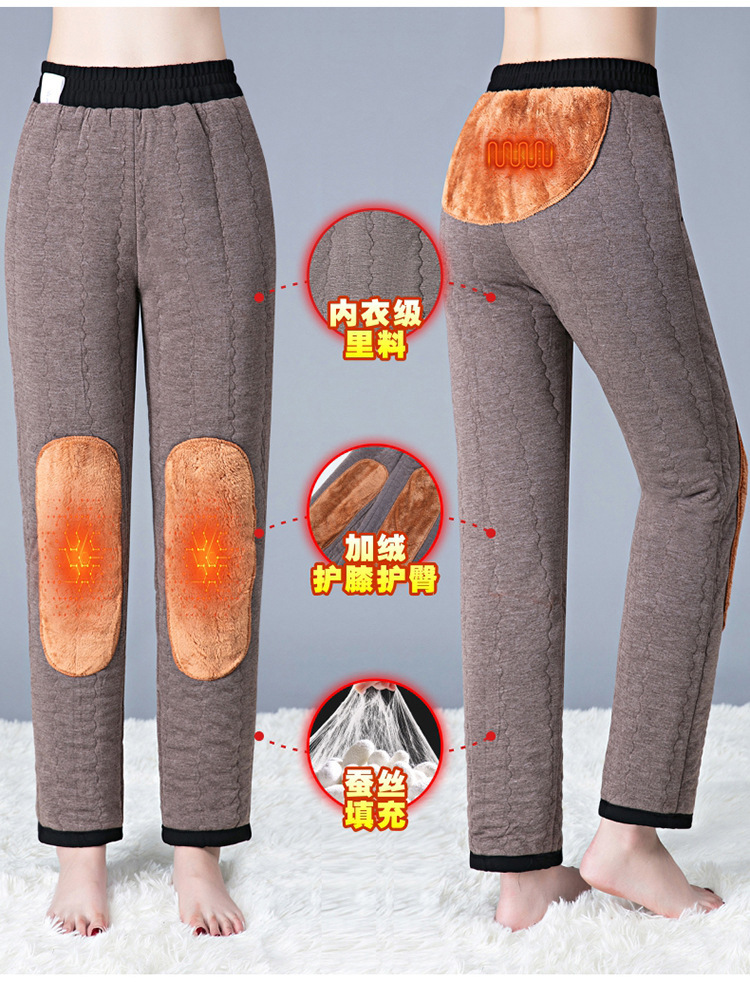 綿のズボンの女性の冬の中高年のお母さんのズボンとベルベットの厚い外は保温のシルクのズボンの東北の高い腰の膝のズボンを着ます。