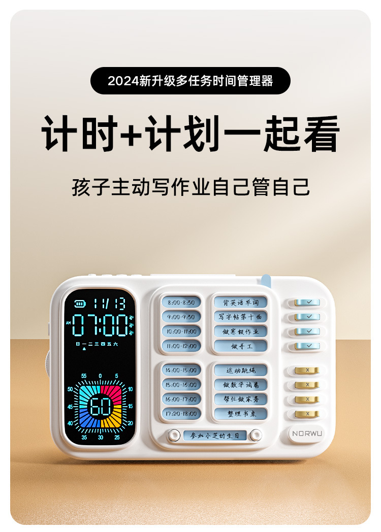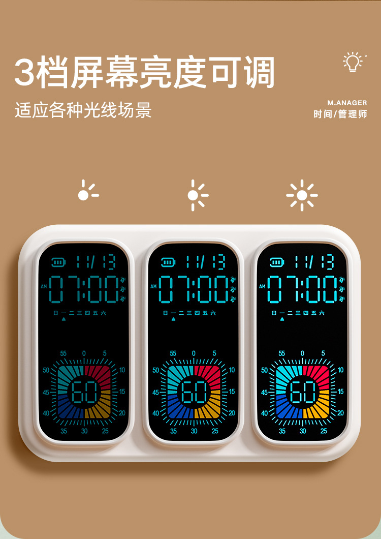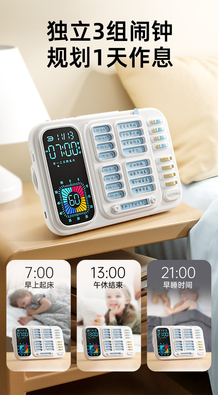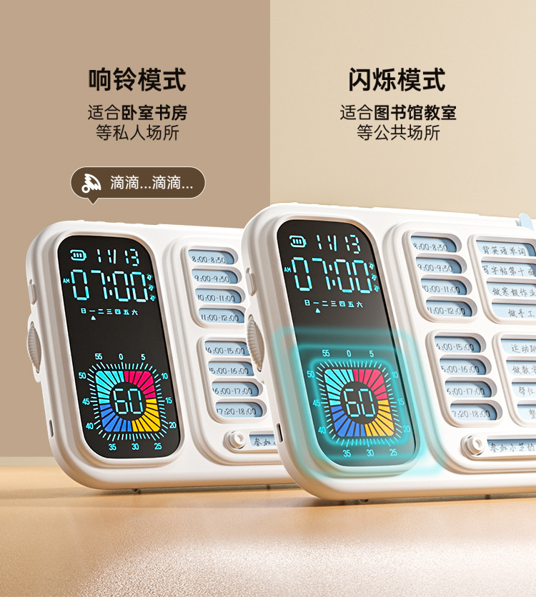 スリーインワンスケジュールチェックイン学生目覚まし時計スヌーズバックライトビジュアルタイマー自己規律管理カウントダウン目覚まし時計