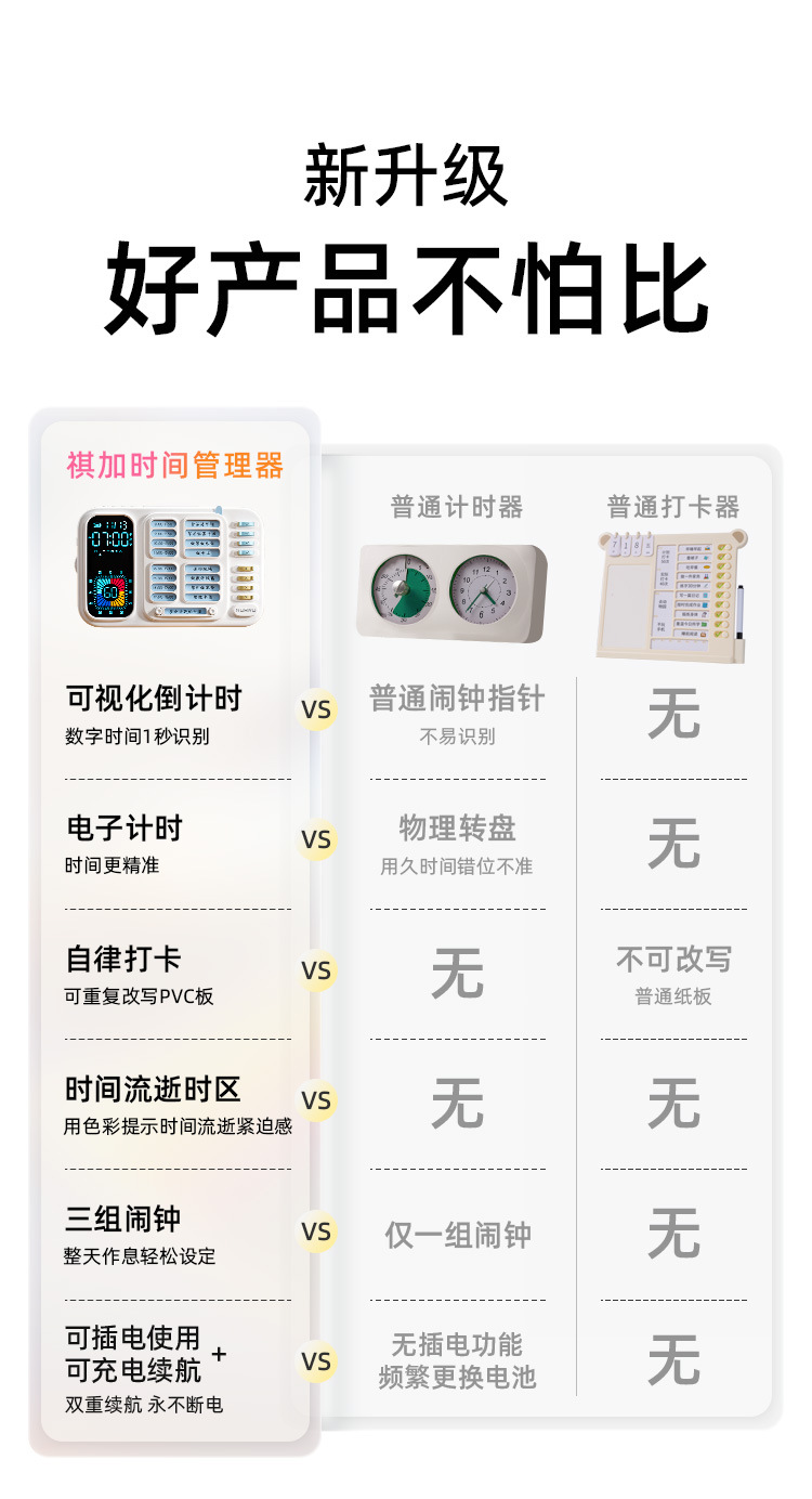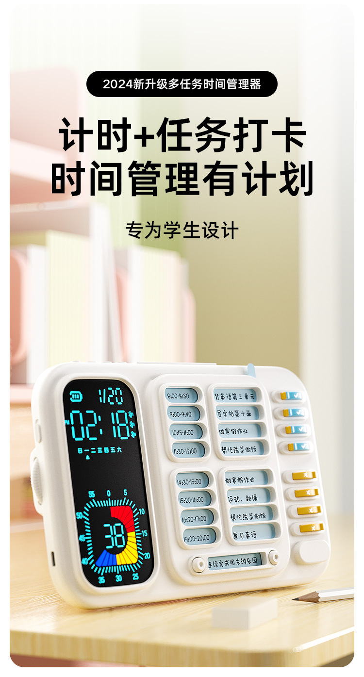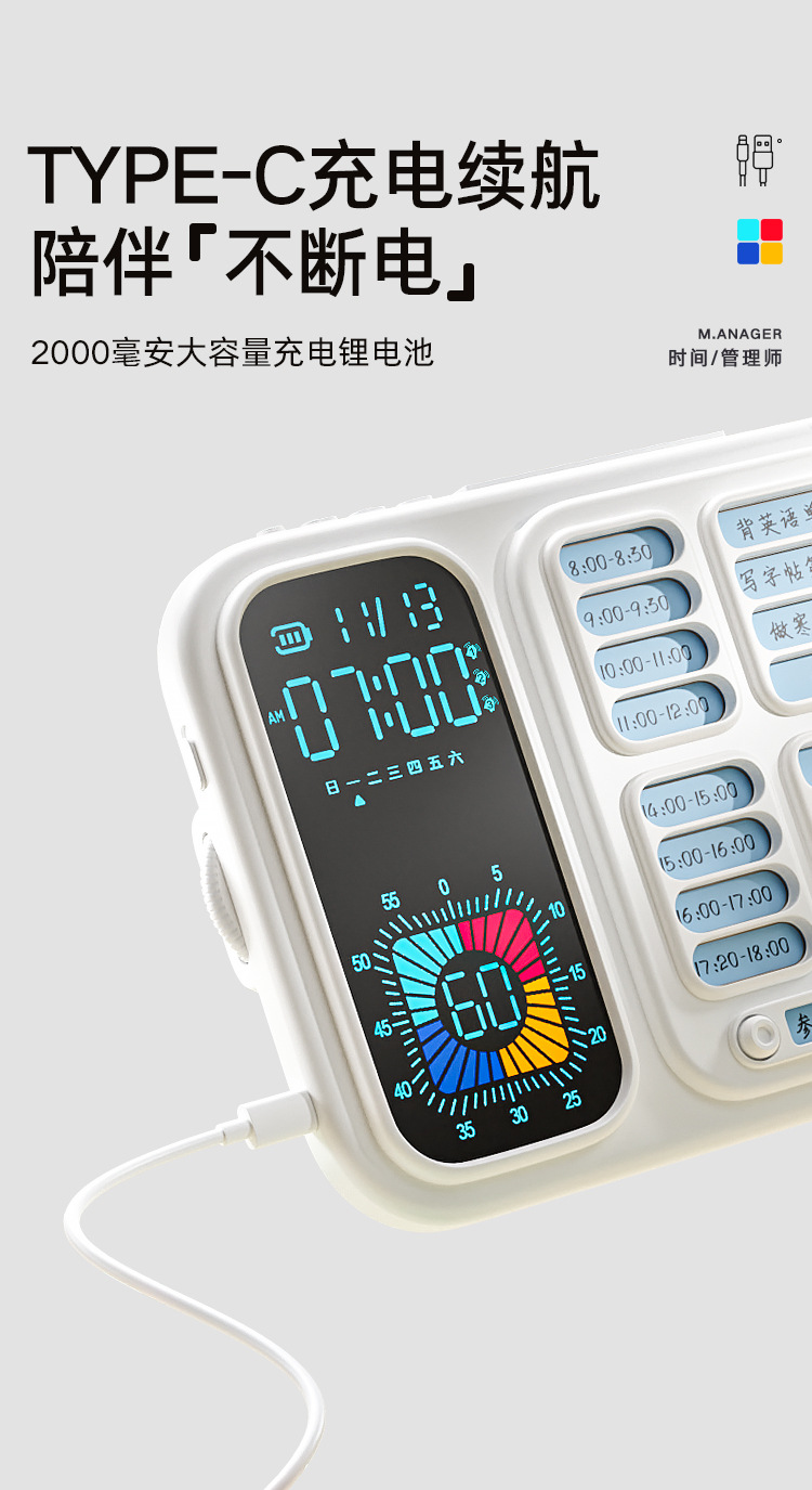 スリーインワンスケジュールチェックイン学生目覚まし時計スヌーズバックライトビジュアルタイマー自己規律管理カウントダウン目覚まし時計
