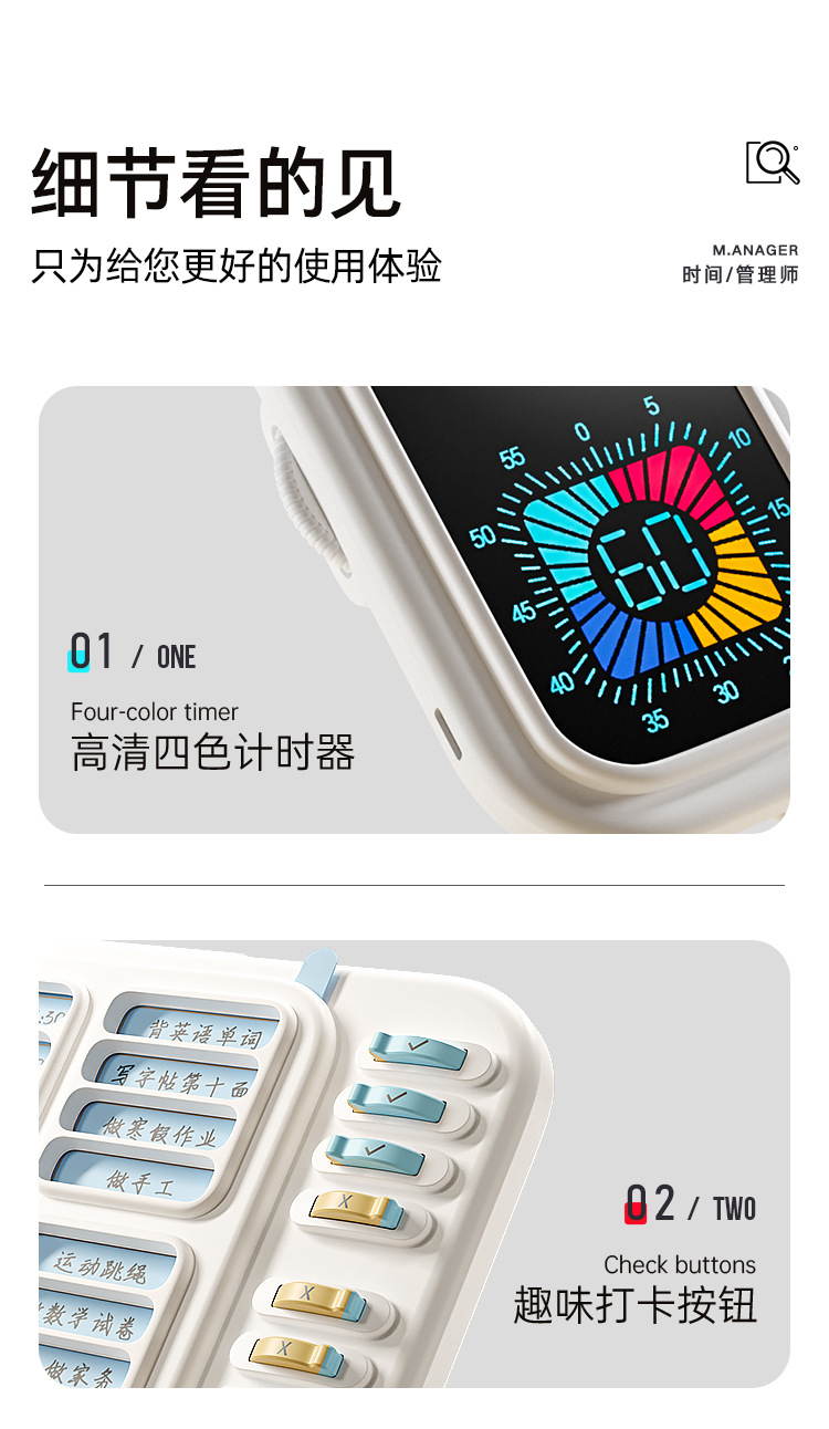 可视化双拼学生计时器 儿童学习自律作业时间管理神器静音定时器