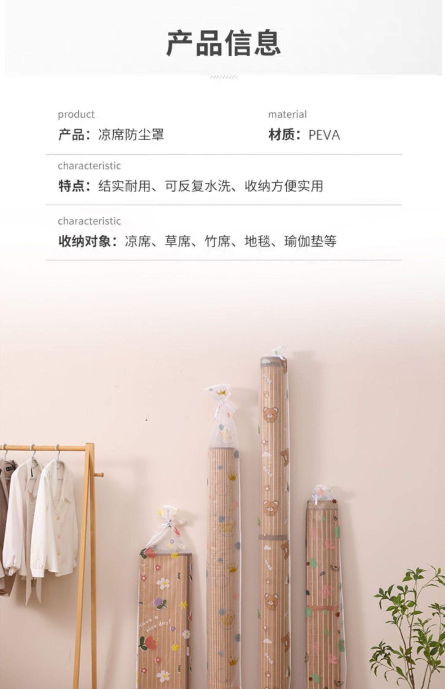 Peva凉席カバーカーペットマット防塵防湿収納袋直筒竹席カバー折り畳み草藤席ポケット
