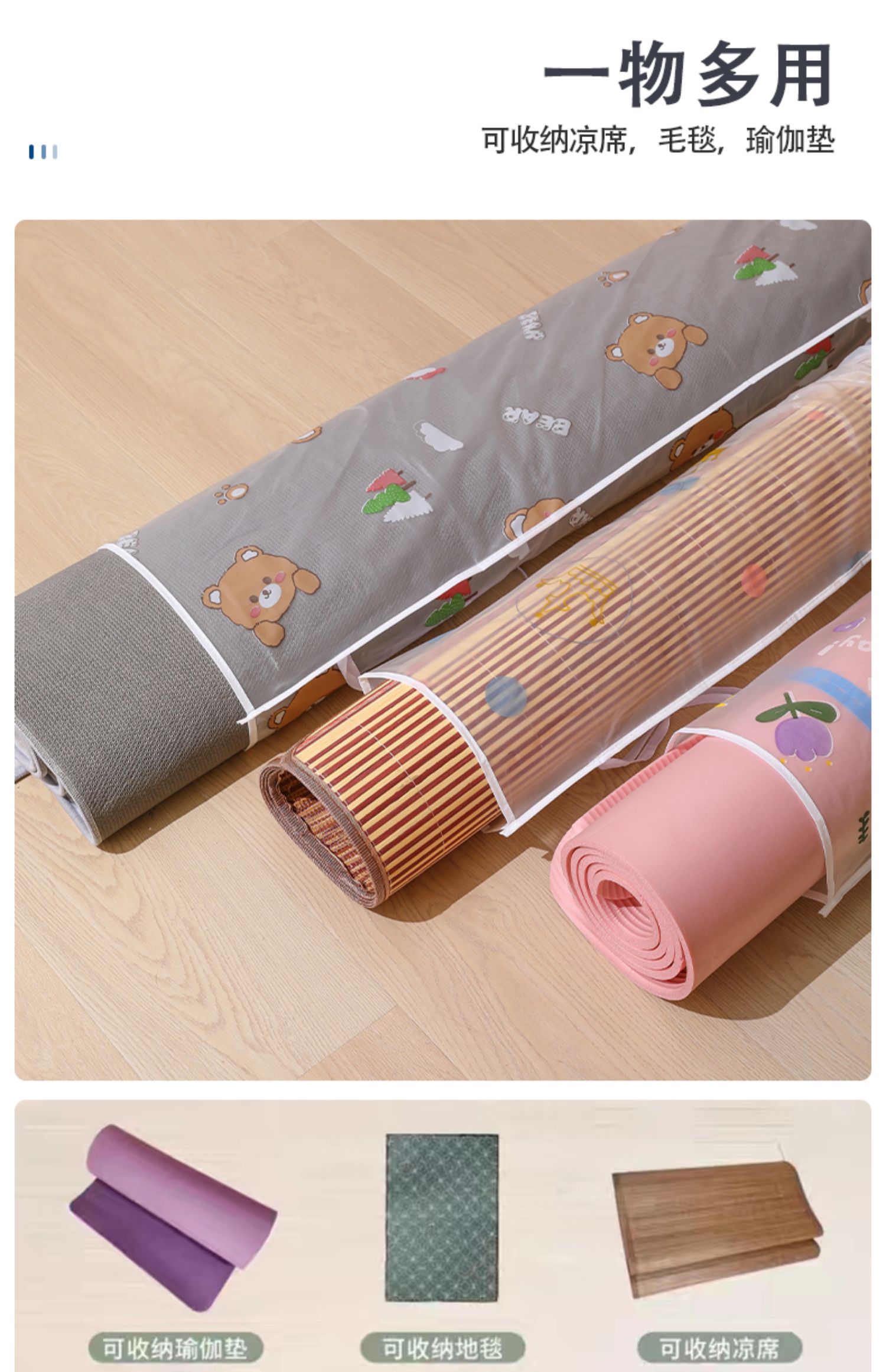 PEVA凉席収纳袋カーペットフロアマット防尘防湿収纳ストレート竹畳カバー折りたたみ籐畳ポケット