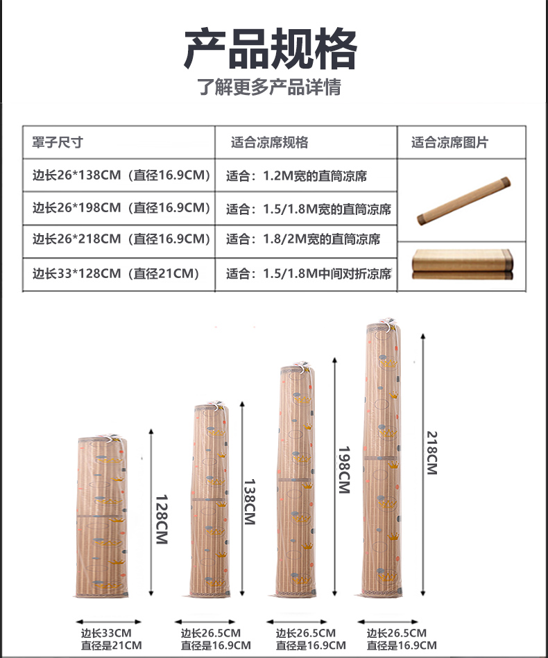 凉席收纳袋防潮防水直筒竹席套席子草席防尘袋子家用pe束口袋收纳