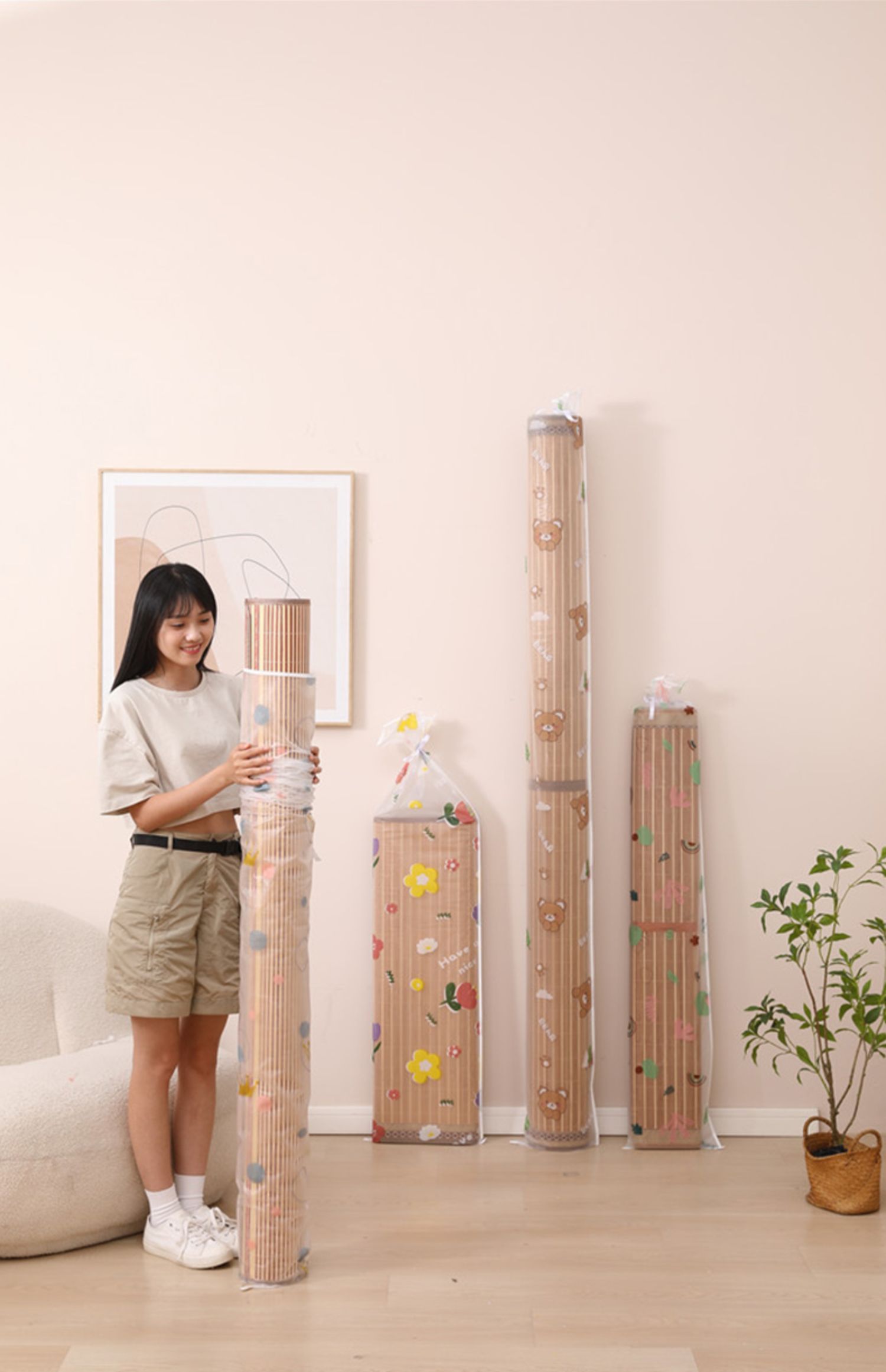 PEVA凉席カバーカーペットマット防塵防湿収納袋直筒竹席カバー折り畳み草藤席ポケット
