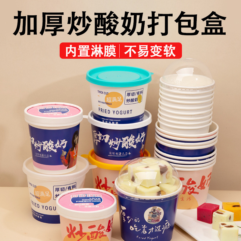 厚みのある使い捨て厚切りフライドヨーグルト紙ボウル蓋付き業務用薄切り食品グレードヨーグルトボックス包装箱