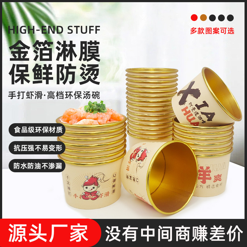手打海老滑紙碗包装箱使い捨て金膜紙碗アルミ箔外販売箱金蓋付商用印刷可能ロゴ