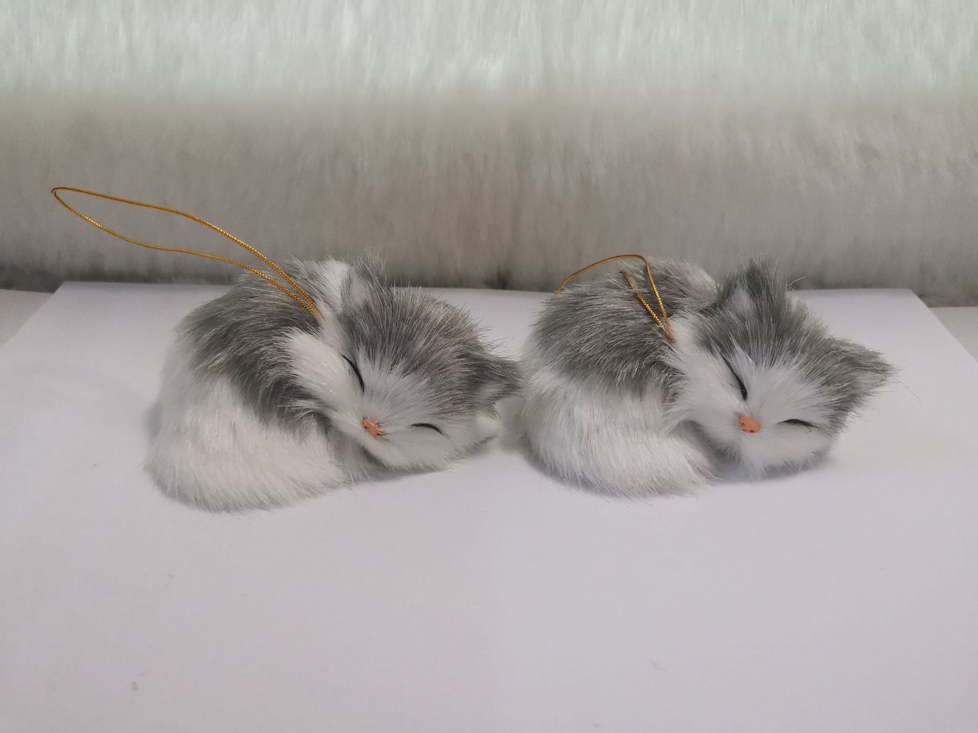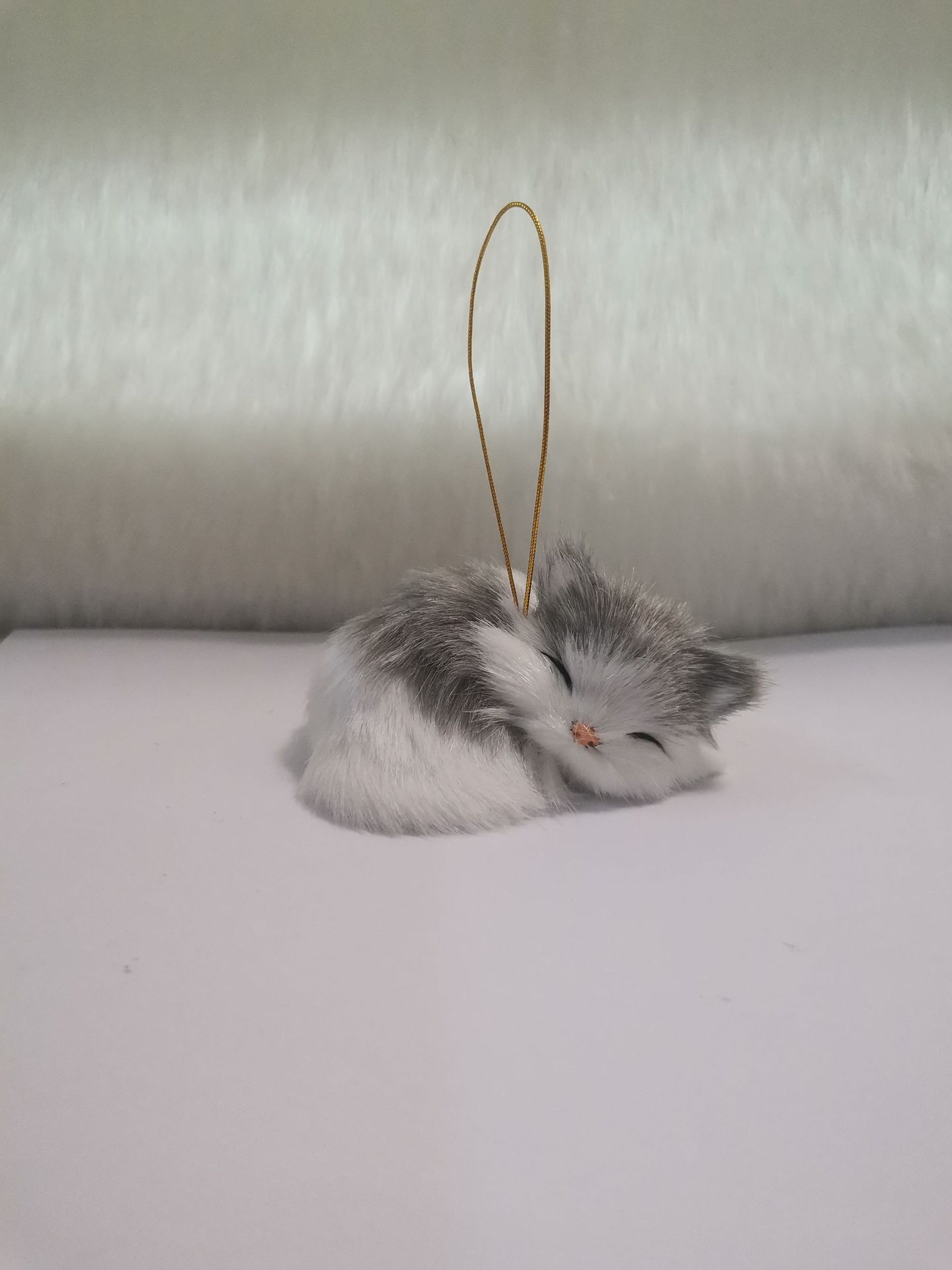 ぬいぐるみ風人工皮革動物、リアルな可愛い猫のペンダント、眠っている猫の置物、クリスマス飾り