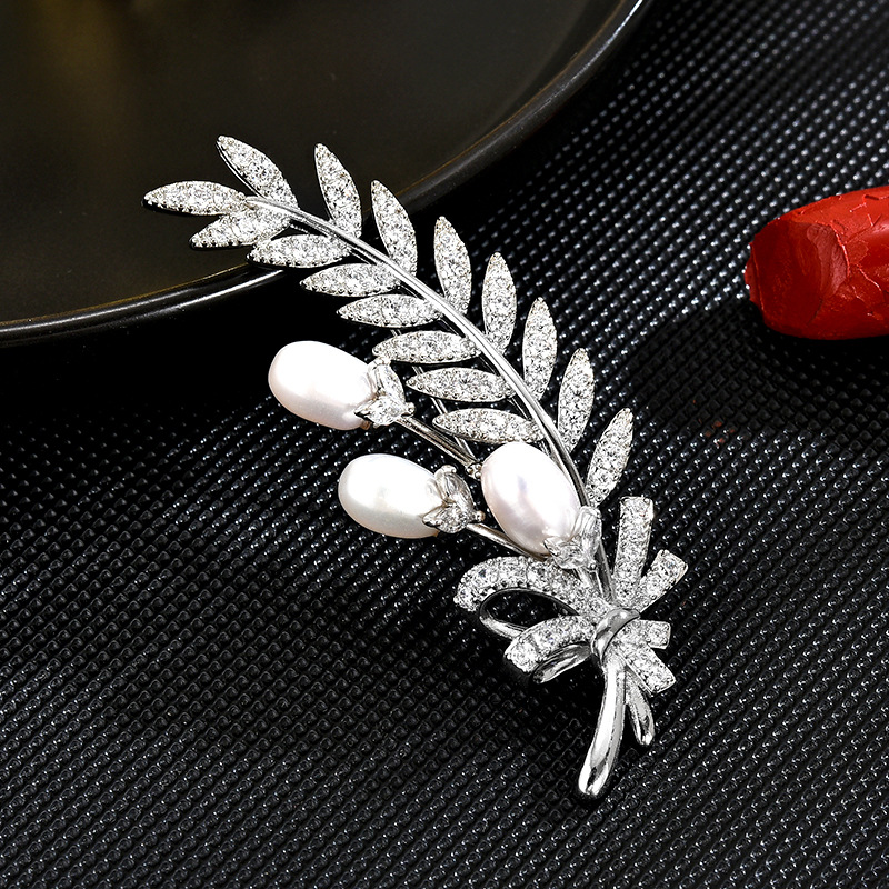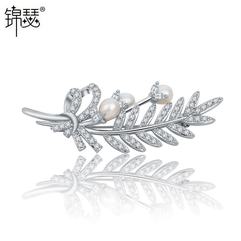 西涼妃子高級服装アクセサリー麦穂ブローチジルコン天然真珠葉胸花diy部品ピン