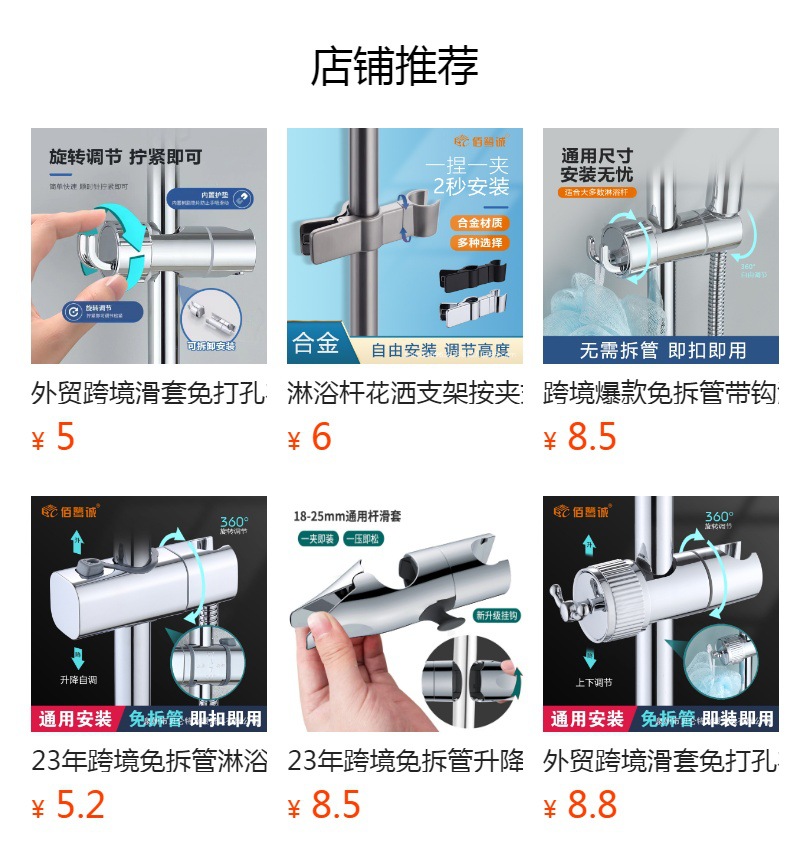 外国貿易クロスボーダー分解不要のチューブフック付きスライドスリーブパンチフリーシャワーブラケットミッドフォークシャワーヘッドホルダーユニバーサル