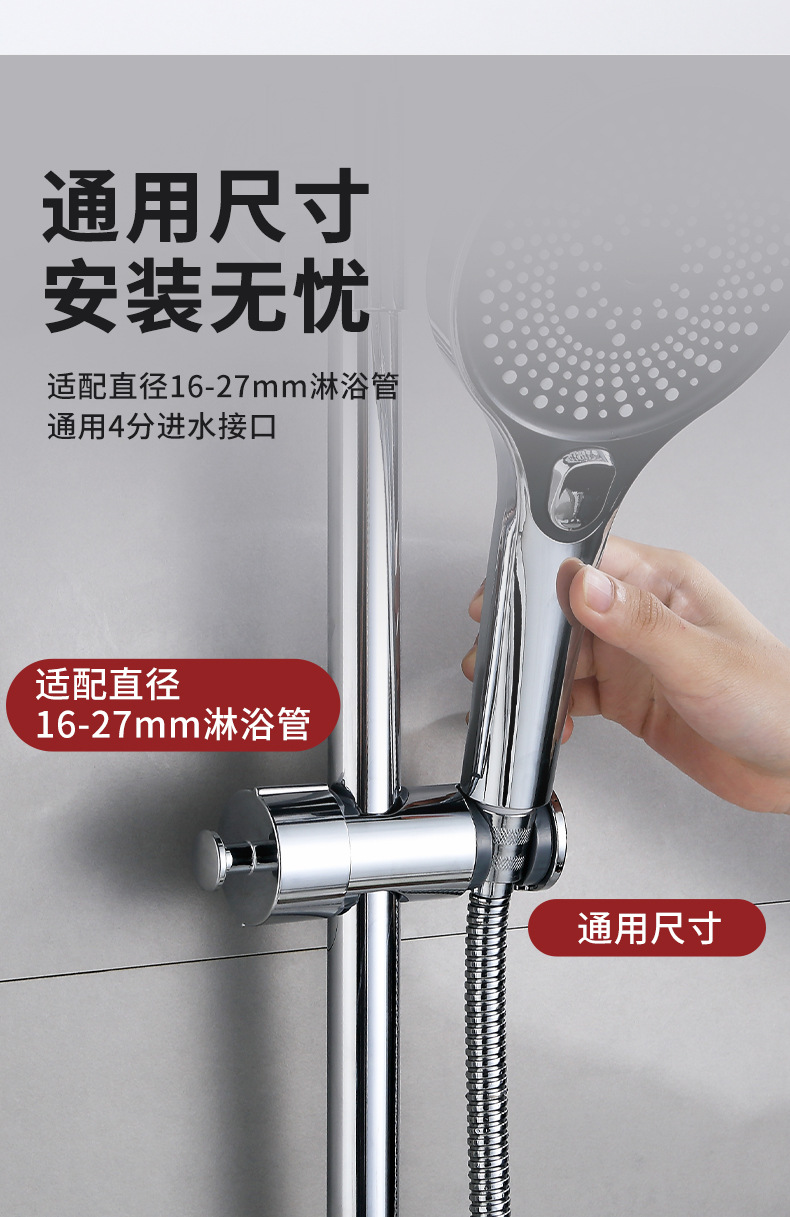 免拆管花洒支架升降杆固定座卡扣滑套中叉洗澡喷头固定夹子免打孔