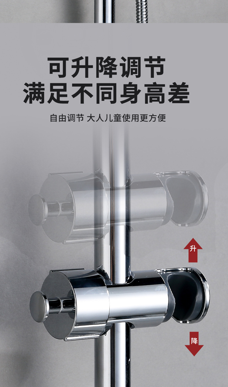 外贸跨境滑套免打孔花洒支架可拆卸升降杆中叉沐浴喷头固定座通用