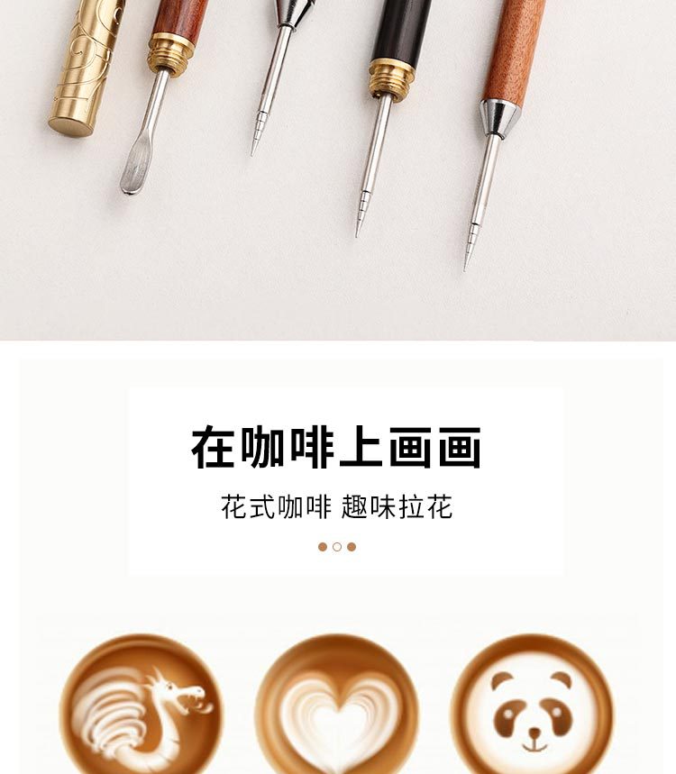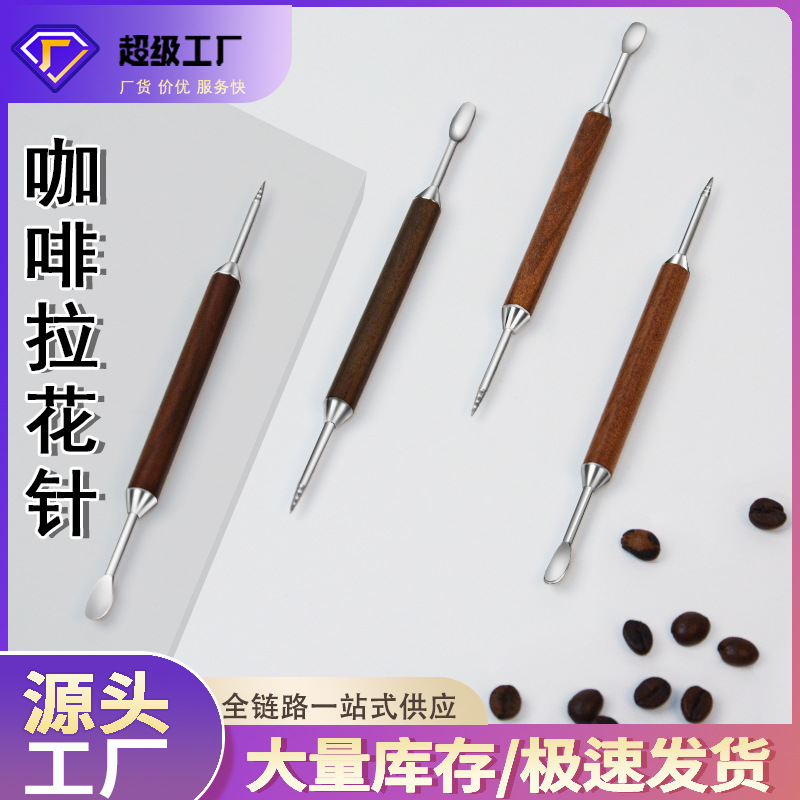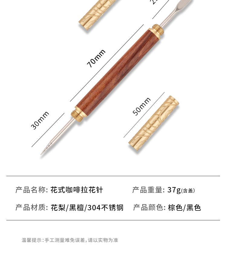 咖啡拉花针花梨木柄雕花针花式拉花针雕花棒拉花器具创意金箍棒