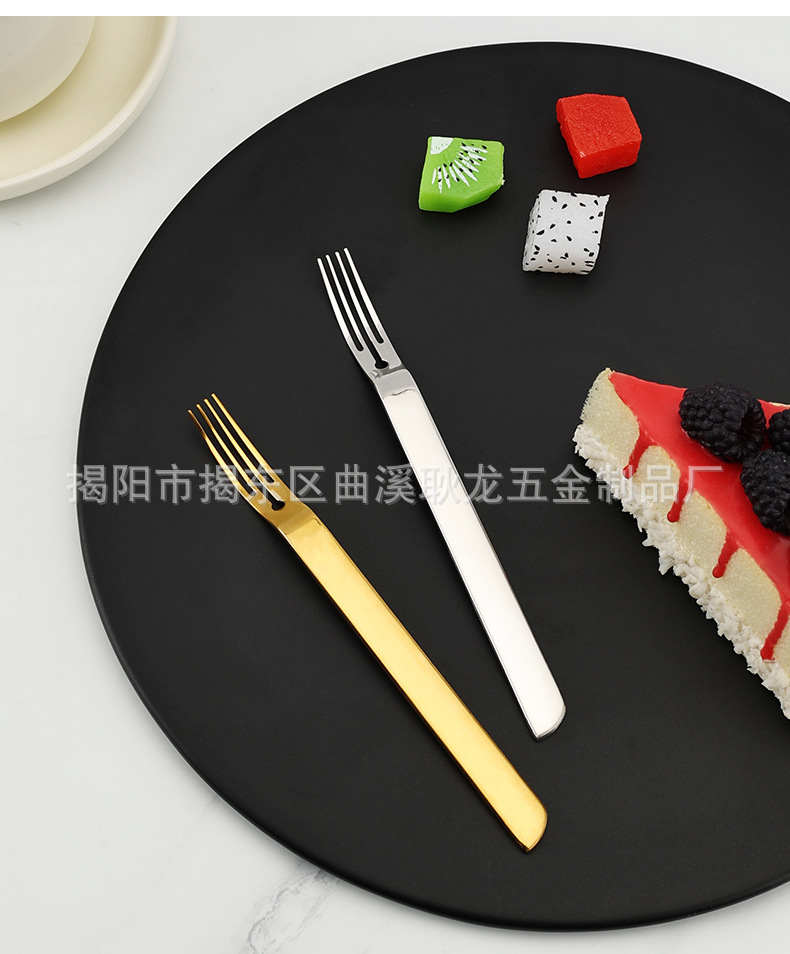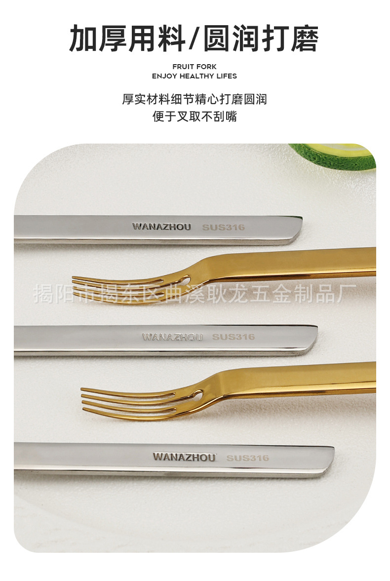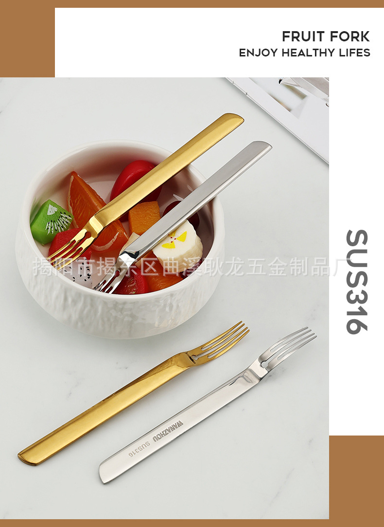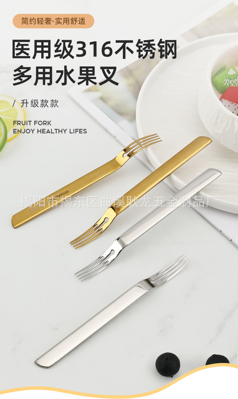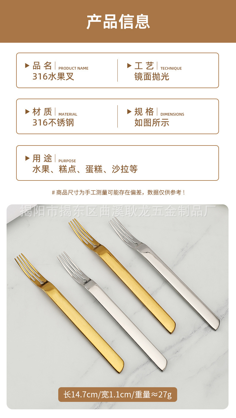 316不锈钢水果叉轻奢蛋糕甜品叉加厚方柄长齿小叉子网红果签