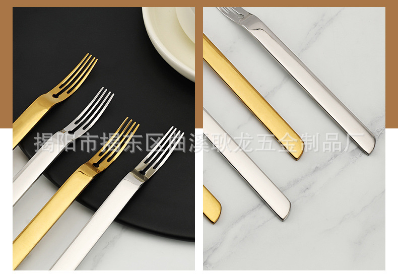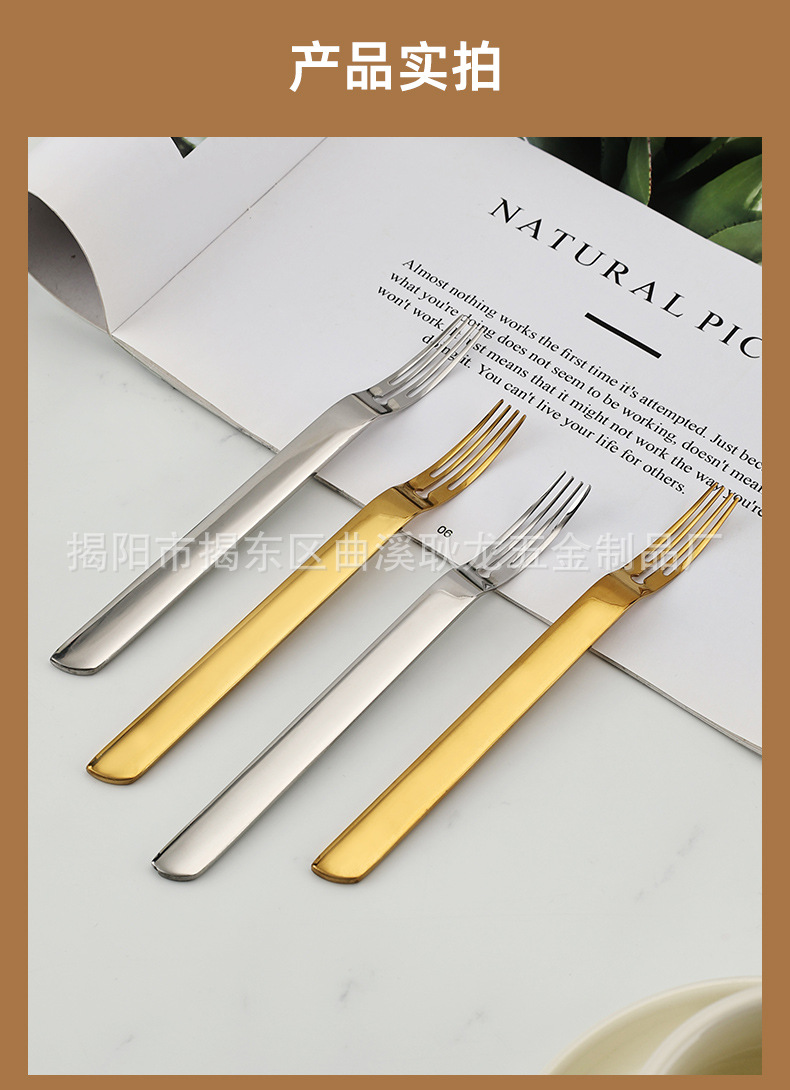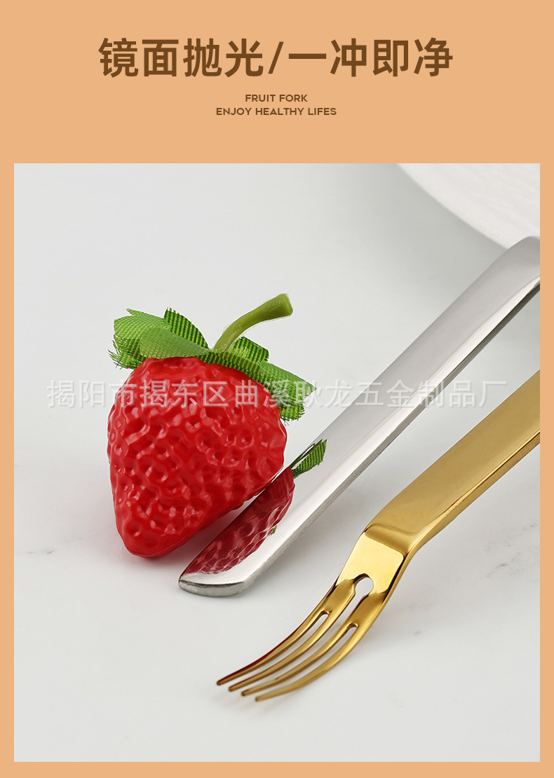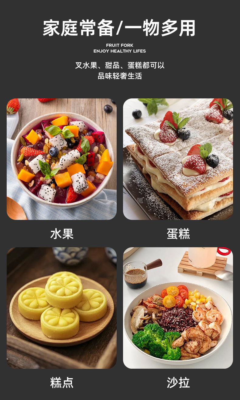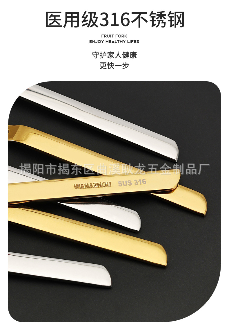 316不锈钢水果叉轻奢蛋糕甜品叉加厚方柄长齿小叉子网红果签