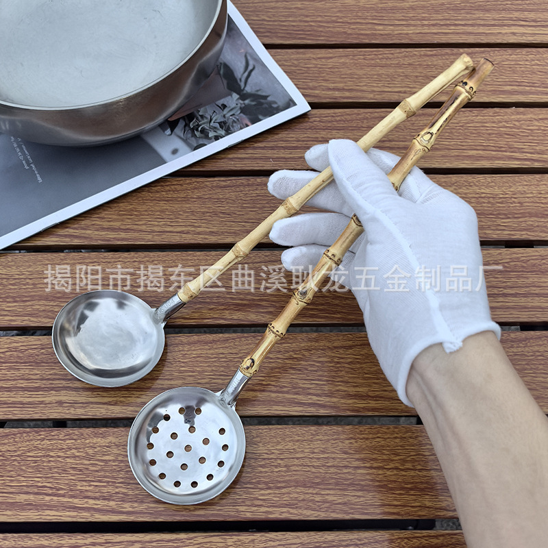 日本式食器竹節スープスプーン日本料理竹柄漏れスプーン304ステンレススプーンホテル竹スプーン竹根火鍋スプーン