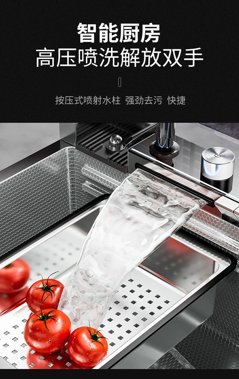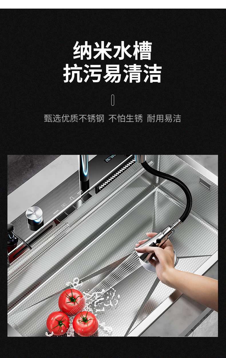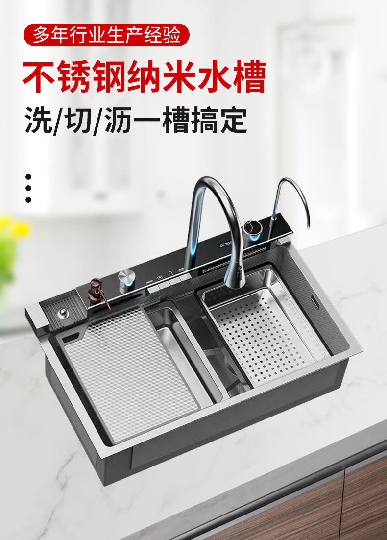 SUS304不锈钢洗碗池多功能数显瀑布飞雨大单槽水槽厨房纳米洗菜盆